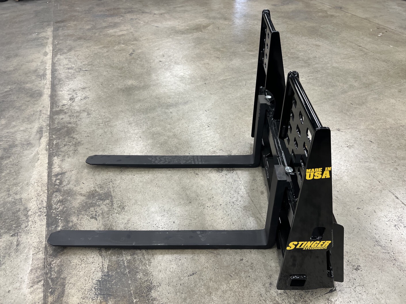 Stinger Attachments offers both 48- and 60-inch fork lengths to suit various applications. If your tractor's load capacity permits, these forks can accommodate weights up to 5,500 pounds. During manufacturing, we use a precision jig fixture to ensure the tightest tolerances for accurate fitting and smooth sliding.
